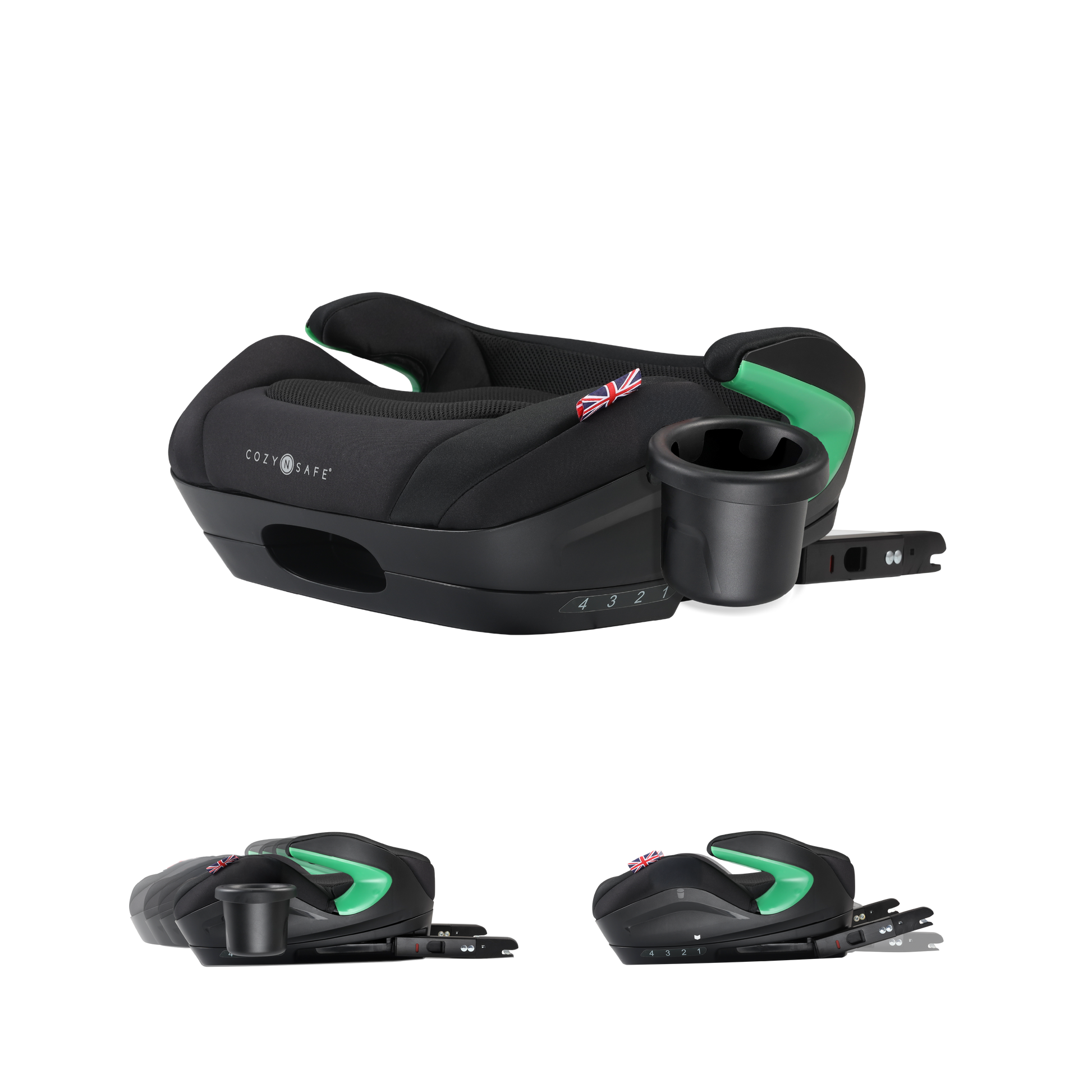 The Cozy N Safe Cosmo i-Size Booster Car Seat ensures safety and comfort for children 125-150 cm tall. Featuring a Swivel ISOFIX device, it allows easy installation and rotation. With four recline positions, deep padding, and a durable injection mould design, it offers lasting protection and support for every journey.