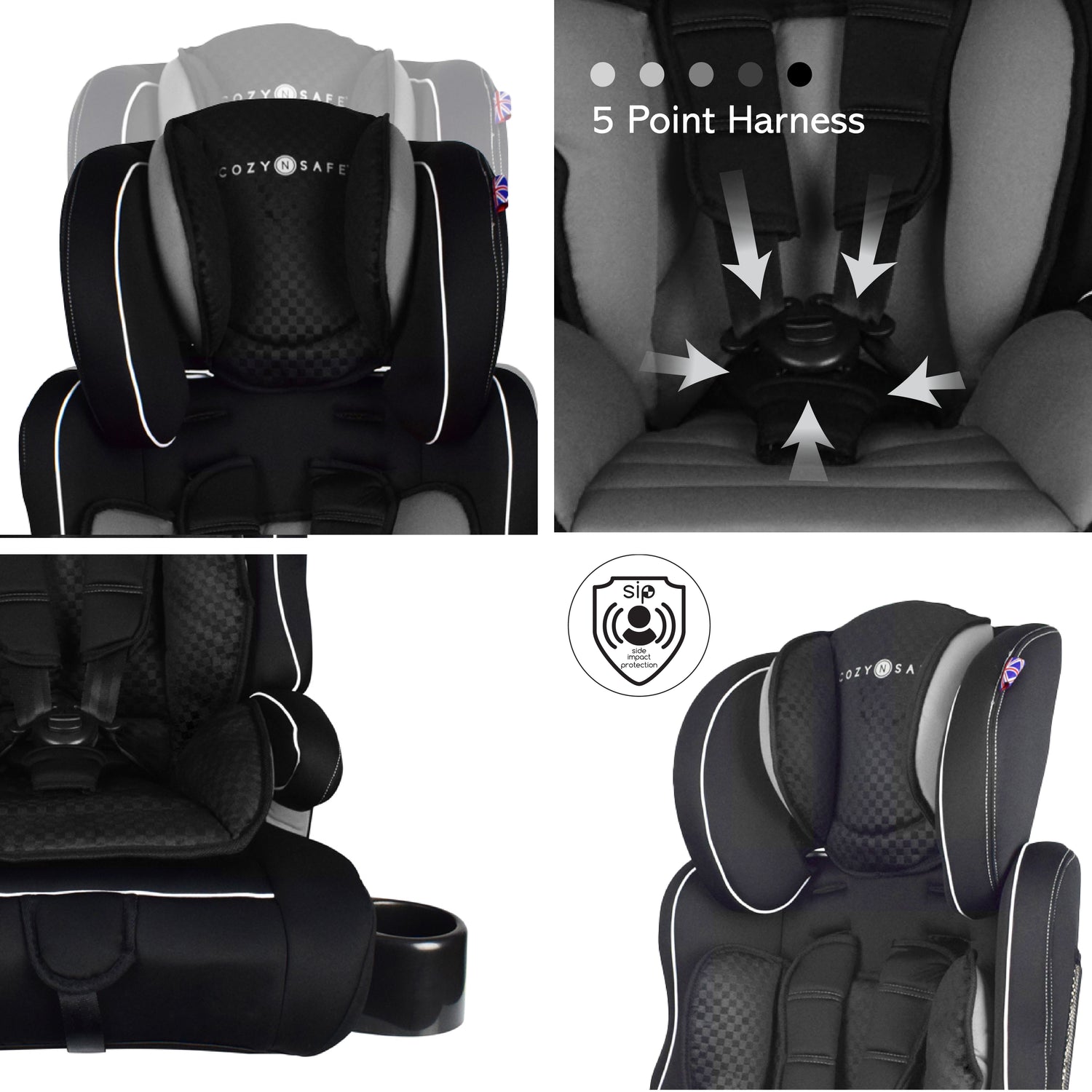 The addition of a removable insert, removable head cushion, memory foam and side impact protection give you peace of mind that your child is both Cozy N Safe.