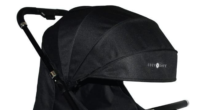 The stroller features a 2 position canopy that extends down further than most to keep your baby cozy against the emelemnts. The canopy blocks the sun, wind and rain.