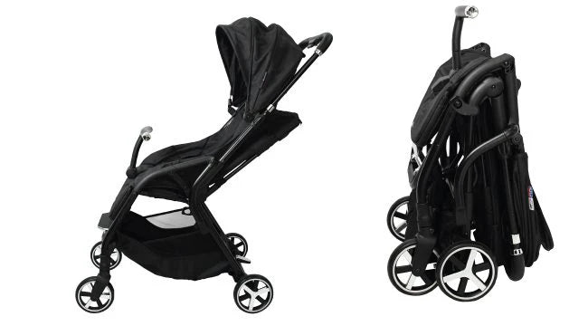 The i-Metro stroller will fold down in less than 5 seconds and back up again in less time. Once folded the pushchair is super compact and the bumper acts as a handy carry handle.