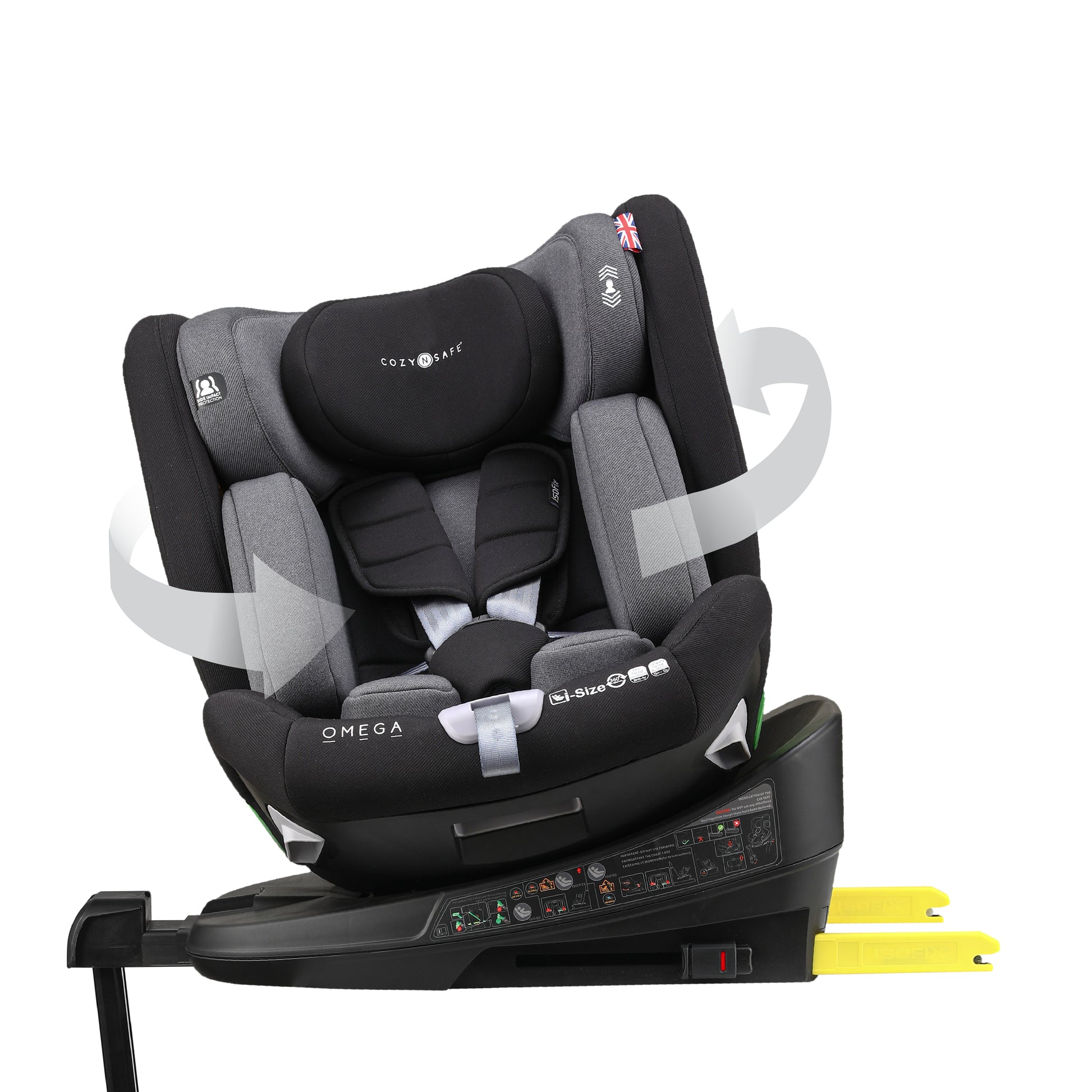 The Cozy N Safe Omega 360 ° car seat is the perfect addition to your new family. The car seat is suitable from birth all the way up to 12 years old. This amazing seat can be used in rear facing mode all the way until your child reaches 105cm tall (approx. 4 years old). The car seat is installed in most cars in under a minute using the ISOFix and support leg system.
